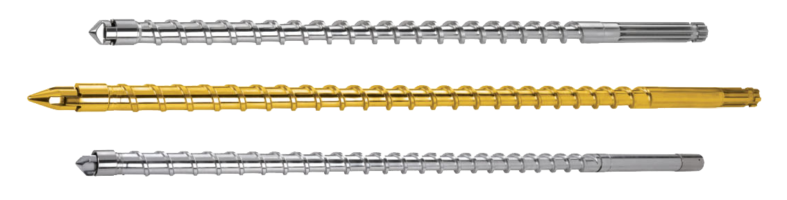 首先對螺釘的外徑進(jìn)行處理,表面噴涂碳化鎢合金,然后研磨至與料筒內孔,相匹配的光滑度,并在螺釘的底部直徑上電鍍硬鉻。