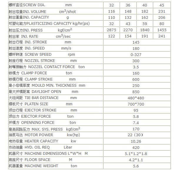 螺桿直徑:32 or 36 or 40 or 45 (mm)
